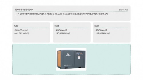 에너지효율시장 조성사업 2025년 에너지효율시장 조성사업 작성자관리자 등록일 25-10-30 조회90회 H 사업장 부산공장 본문 적용 아이템 : 공기압축기 2025년 스마트생태공장 구축지원사업 2025년 스마트생태공장 구축지원사업 목록